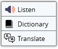 - A pop-up window will open. Select the Play button at the top of the window to hear the text read out to you in that language.