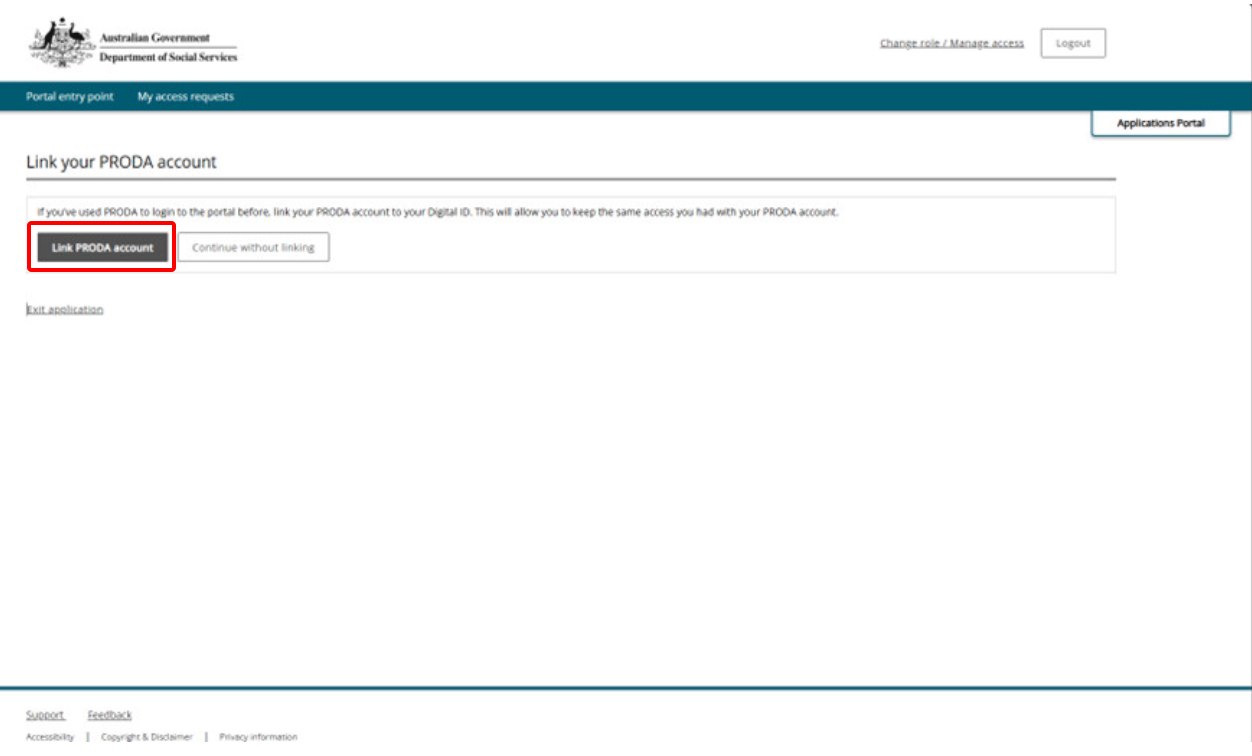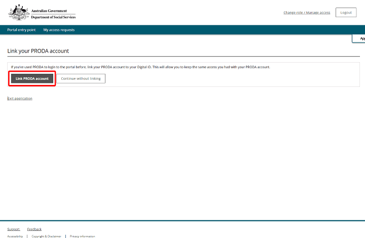 If it's the first time you've logged in with myID and you previously used PRODA, you'll get a message asking if you want to link your PRODA account. Linking your PRODA account means you'll keep the roles you had access to previously.
