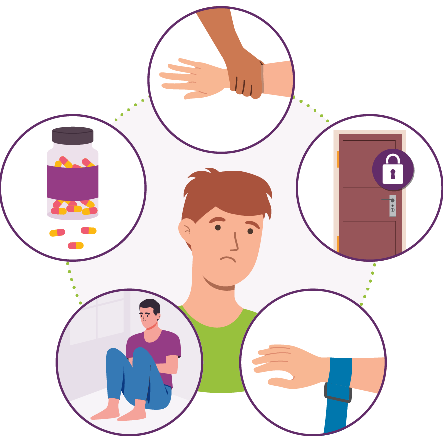 Kabir is now being supported by Anna, an NDIS behaviour support practitioner. Anna is getting to know Kabir and developing an Interim Behaviour Support Plan (BSP). Anna thinks that in the short term, Kabir’s should not have access to sharps. This will be reviewed when Kabir's behaviour support assessment is finished. This is an environmental restraint.